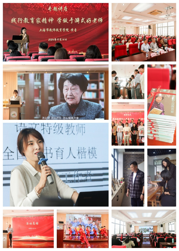 本次活动邀请了上海市教师教育学院黄音老师作“于漪的师者本色:一辈子做教师,一辈子学做教师”主题讲座。黄音老师通过一段视频介绍了“人民教育家”——于漪,一位从教70余年,开设了近2000节公开课,培养了三代特级教师,写下了600多万字的论文专著,她用实际行动诠释了“择一事,忠一生”的教育家。她围绕“课堂教学是教师的安身立命之本”“一个心眼儿为学生”和“一辈子做教师、一辈子学做教师”三大方面,通过分享数个于漪老师感人的故事,诠释了教育家精神,让与会教师近距离地感受到了人民教育家的平凡与伟大,更深刻体会到了于漪老师身上一以贯之的探索精神,育人为本的人文底色和慨然自认的世人风范。老师们会以于漪为榜样,牢记教书育人的使命,在平凡的教育教学岗位上知行合一,更进一步。