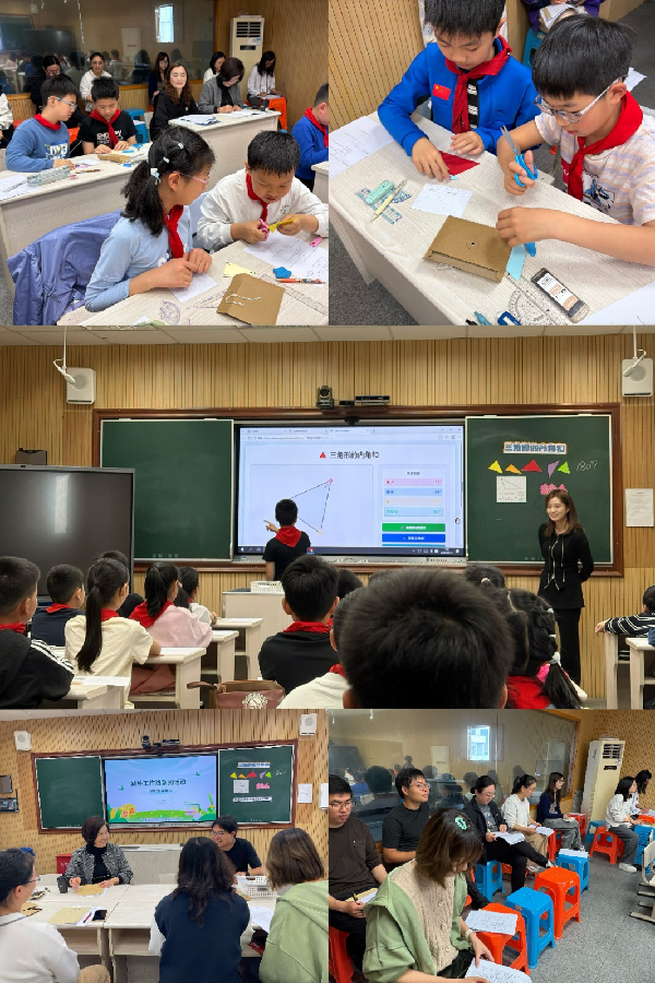 2026年4月10日,朱家角小学“勤朴工作坊”系列活动之数学学科第一次课例研讨顺利举行。本次活动以许家佳老师执教的四年级《三角形的内角和》一课为载体,全体数学勤朴工作坊成员及专家何雪芳老师共同参与,展开课堂观察与教学研讨。
