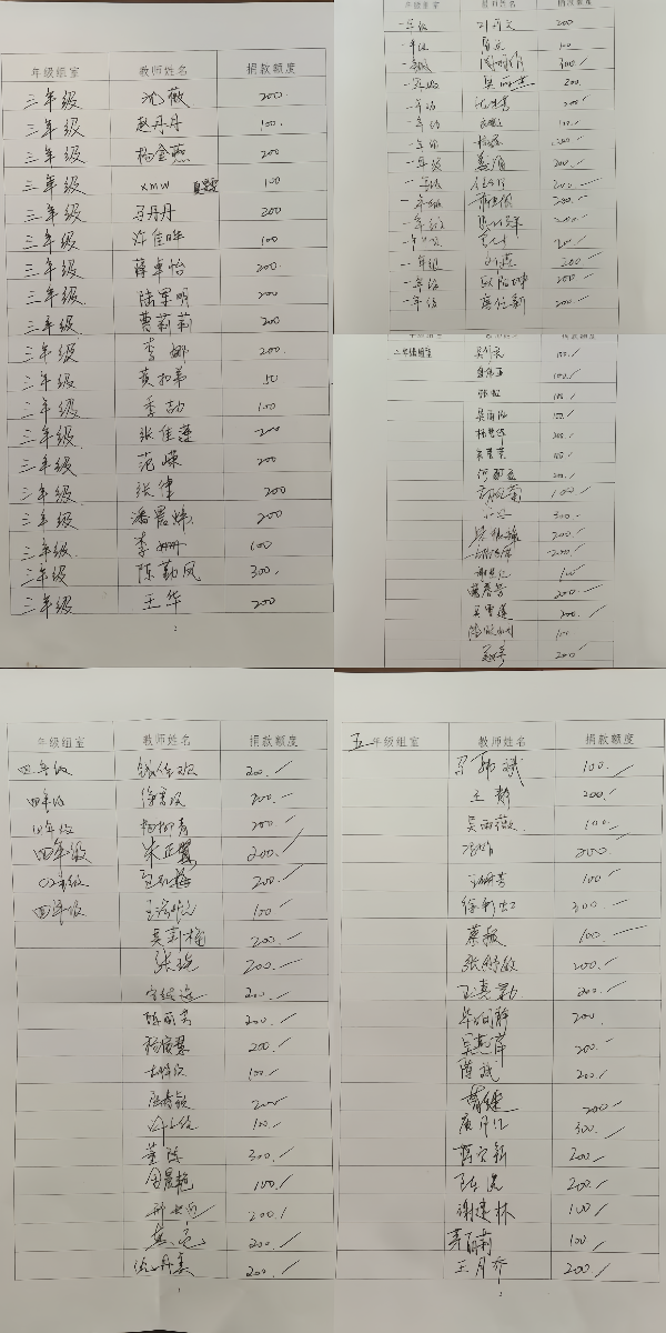 我校教师用自己的实际行动传递温暖、传播正能量,积极弘扬和践行社会主义核心价值观,营造了互帮互助、人人献爱心的良好社会氛围。我校教职员工共捐款人民币15550元整。全体教职员工表示“只要人人都献出一份爱,世界将变成美好的人间”,让我们继续把爱心传递下去。