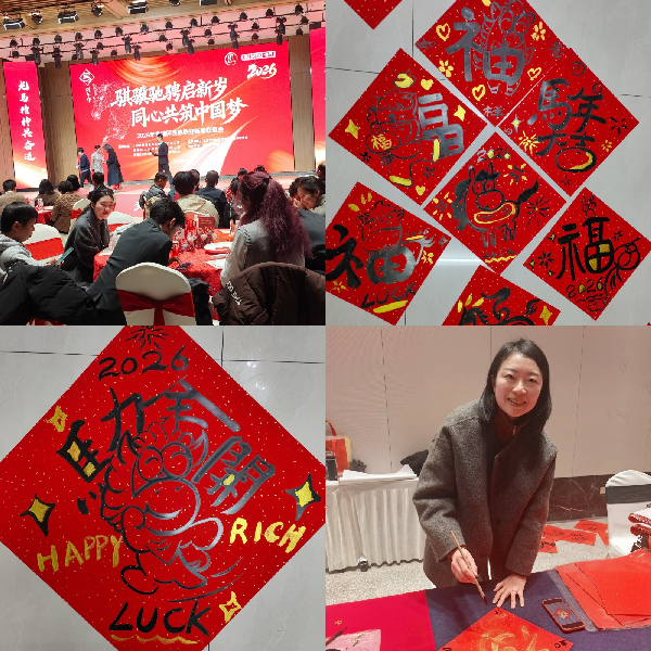 2026年2月4日,我校少数民族党员教师李娜代表民族联中的朱家角联络组,参加“骐骥驰骋启新岁,同心共筑中国梦”2026年青浦区民族联迎新春联谊会。活动现场,李娜老师挥毫泼墨,书写福字,为马年新春送上美好祝福,展现了我校教师积极参与民族团结与文化传承的良好风貌。